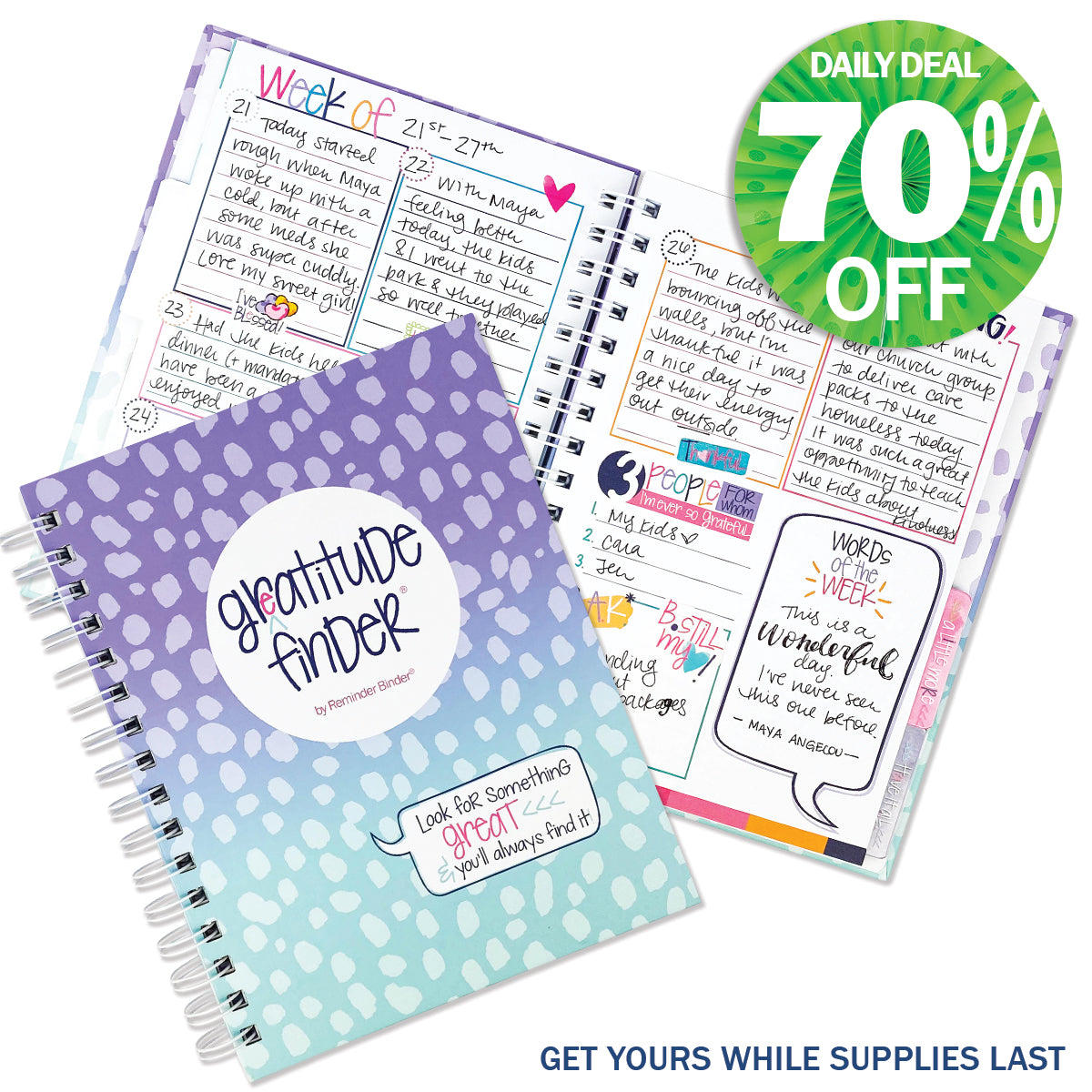 This 52-Week Gratitude Finder® Gratitude Journal is designed to help its holder look for things for which they are grateful. Its bright & cheery pages are the perfect placeholder for daily gratitude.