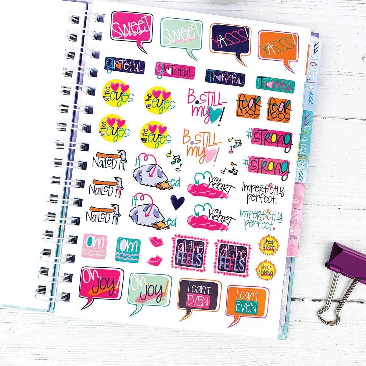 - 165 hand-illustrated smile-provoking stickers to enhance any entry. (177 stickers in Primary Styles)